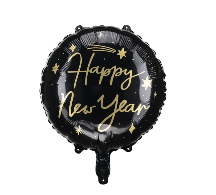 45cm Round Happy New Year Black Foil Balloon #25PD26162 – Each (Pkgd.)